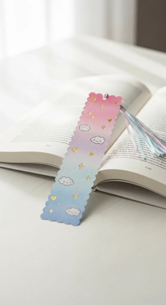 A kawaii pastel bookmark is a fun pick if you like playful designs and soft colors. Think pale pink, lilac, baby blue, butter yellow, and tiny shapes like hearts, stars, clouds, or smiling fruit. You can draw them by hand, use stickers, or cut shapes from patterned paper. The key is keeping the design sweet but not too bulky. This bookmark style works well for younger readers, journaling fans, or anyone who likes cheerful accessories. It is also very easy to customize with supplies from discount craft shops. Try laminating it if you want it to last longer. A pastel ribbon or mini charm can make it even cuter. This idea is inexpensive, easy to personalize, and nice for matching with your notebooks or stationery. Reading already feels comforting, and a soft playful bookmark can make that quiet moment feel even happier.
