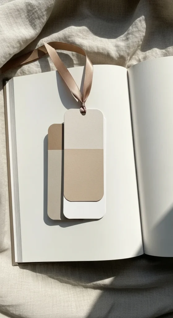 A neutral cardstock bookmark is perfect if you like clean and simple decor. This idea looks expensive, yet it costs very little to make. Cut a strip from beige, ivory, or light gray cardstock, round the corners with scissors, and punch a hole at the top for ribbon or twine. You can leave it plain for a quiet look or add a very subtle painted edge in soft brown or dusty rose. The charm of this bookmark comes from its simplicity. It pairs well with modern reading spaces, light wood furniture, and cream bedding. It also slips into books easily without adding bulk. If you want to make several at once, one sheet of cardstock can give you multiple bookmarks for almost no cost. This is a good option for students, journal lovers, or anyone who likes a calm, uncluttered style. Sometimes the prettiest ideas are the ones that stay simple.
