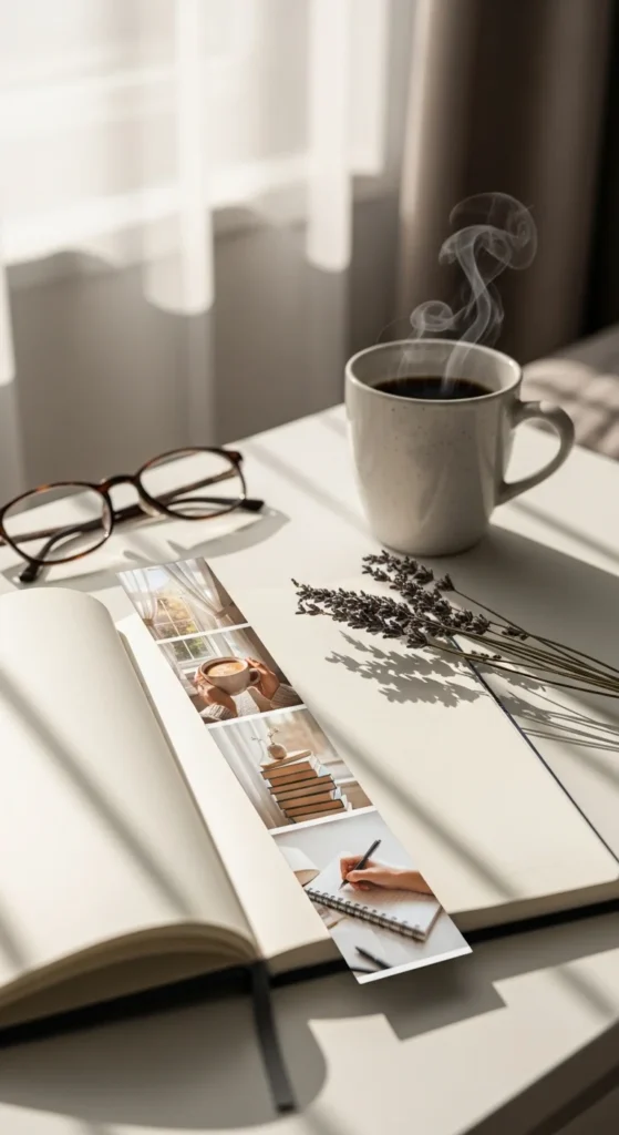 A photo strip bookmark turns favorite memories or pretty visuals into something useful. Print a few small images in a vertical strip, glue them onto cardstock, and laminate the finished piece for strength. Use travel photos, flowers, pets, books, or soft room details that match your style. This idea works really well if you want a bookmark that feels personal without being hard to make. It also makes a sweet gift because you can tailor it to the reader. Printing at home keeps the cost low, and one photo sheet can create several bookmarks. Choose images with similar colors so the strip feels neat and cohesive. Add a ribbon if you want, but the photos alone usually look nice. This bookmark can make reading feel more connected to your own life, which is part of what makes it special.