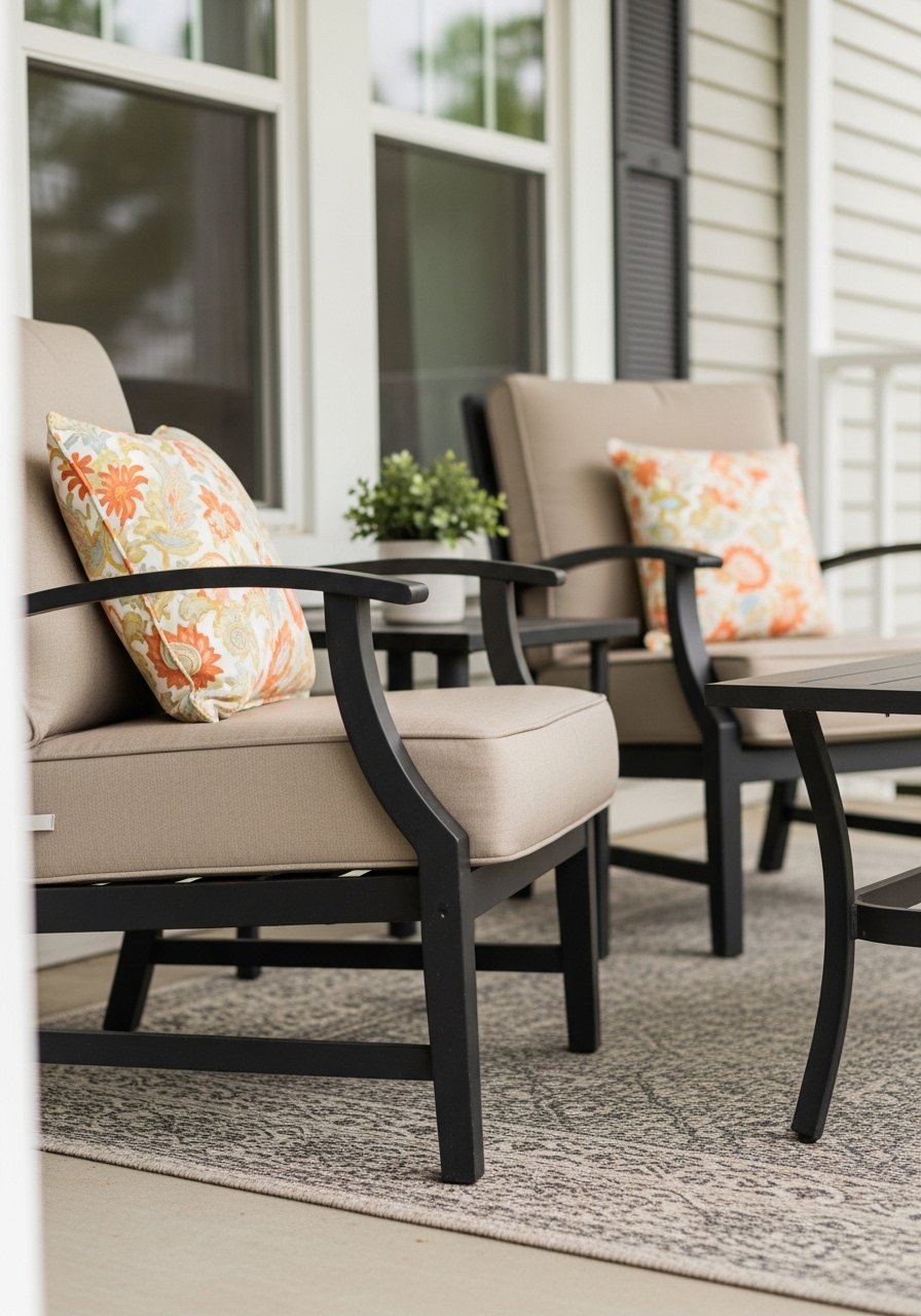 I set two identical chairs with a small table between them. Symmetry makes the porch look intentional. An outdoor rug anchors the space and feels like a welcome mat turned up a notch.