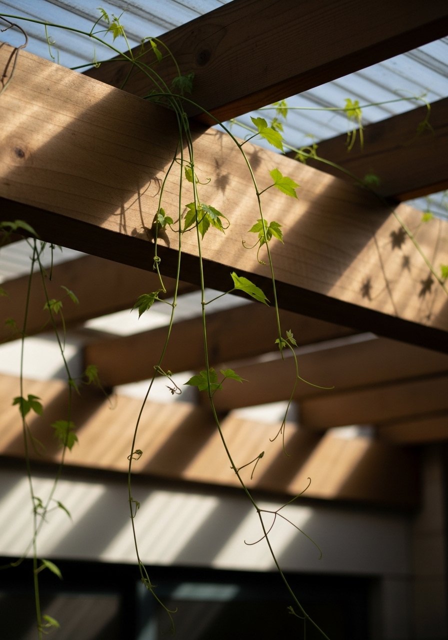 14. Front Porch Pergola with Climbers for Soft Shade