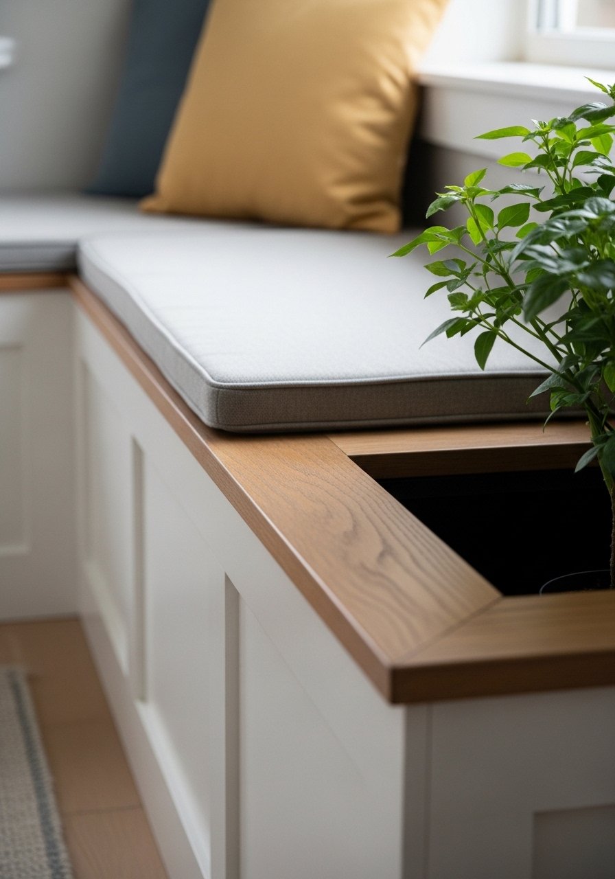 My narrow porch couldn’t fit chairs, so I built a bench with planters at each end. It’s seating and greenery in one. I added cushions and it became our morning spot.