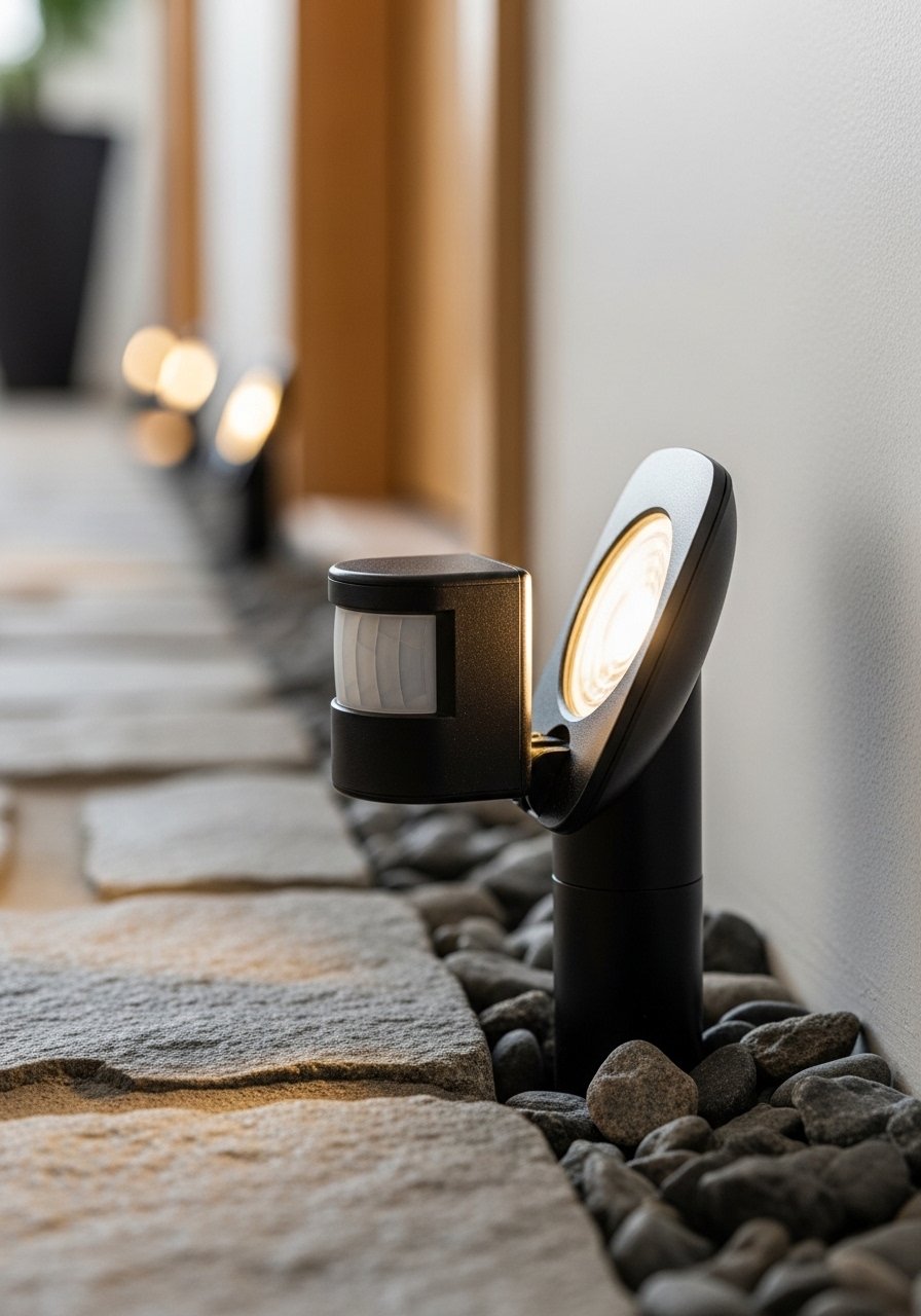 I added motion-sensor path lights near the driveway. They light when you walk up and then dim. It’s welcoming without being on all night.