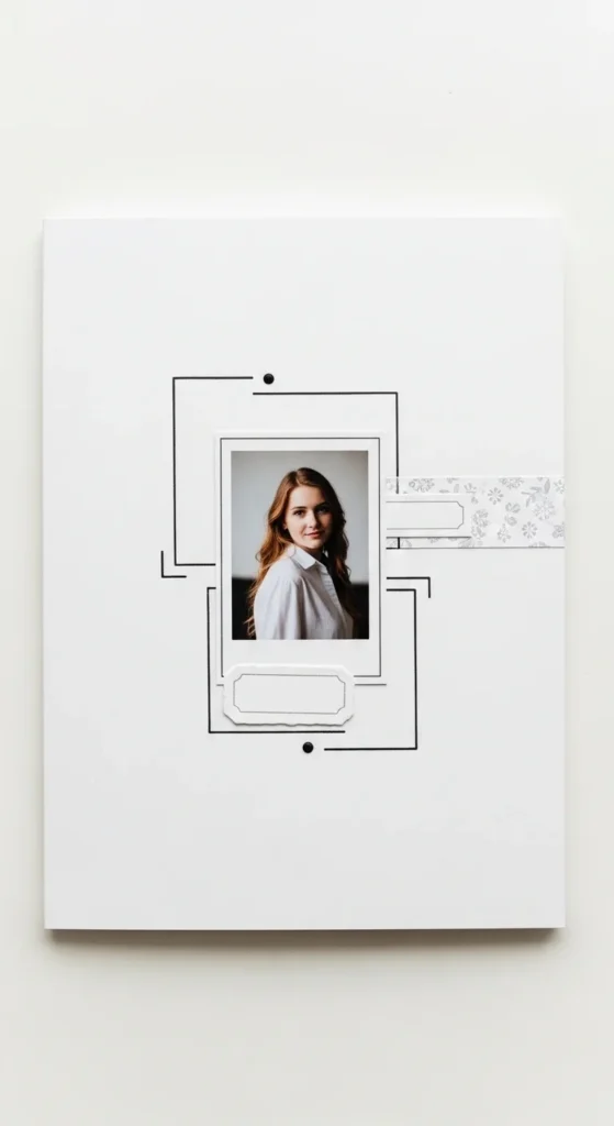Negative space gives the eye a place to rest. Place your photos and decorations in one area of the page. Leave the rest clean and open. This makes the layout look modern and intentional. A few small accents like dots or a thin line can balance the empty space.