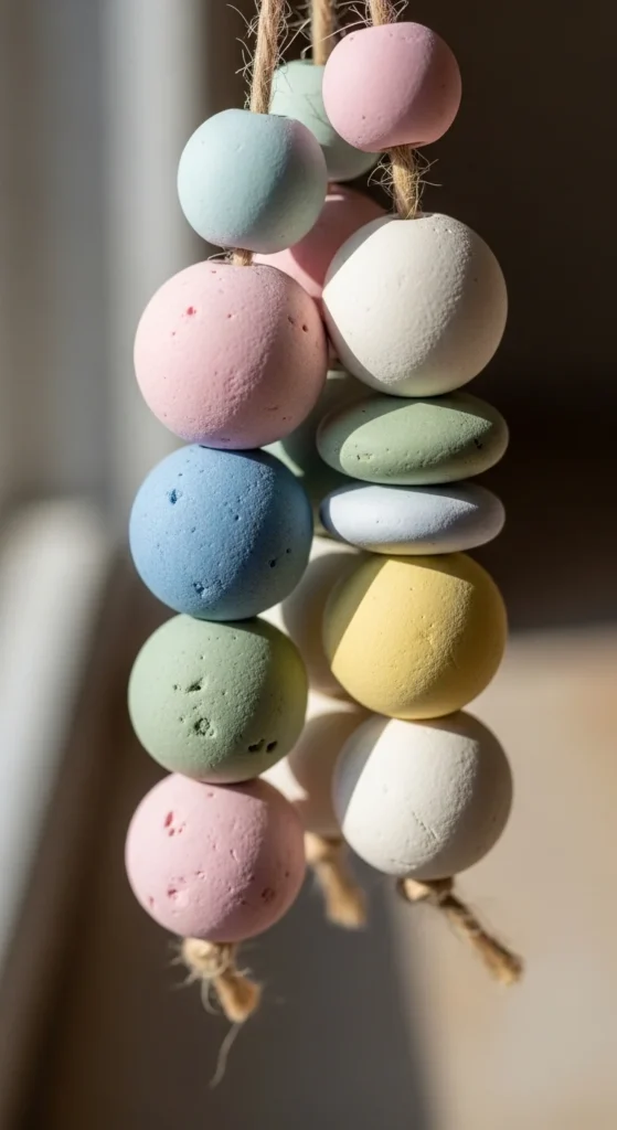 Clay beads are small, quick to dry, and perfect for practicing shaping. Roll tiny balls, ovals, or short tubes between your fingers. Use a toothpick to poke holes through the center while the clay is soft. Rotate gently so the hole stays open as it dries. Try pressing lines or tiny dots around the surface for texture. Once hardened, paint in solid colors or soft patterns. String them onto cord for bracelets, necklaces, or decorative garlands. This project helps you learn consistent sizing and smooth rolling techniques.