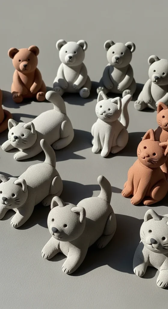Simple animal figurines are fun and great for practicing joining pieces. Start with basic shapes like ovals and spheres for the body and head. Add small ears or tails using tiny bits of clay and press them gently into place. Smooth the joins with a damp finger so cracks do not form later. Keep details minimal. Mark eyes or noses with a toothpick instead of adding fragile parts. Once dry, paint in soft colors and add small facial features with a fine brush. These little animals make cute shelf decor and help beginners gain confidence with shaping and attaching pieces.