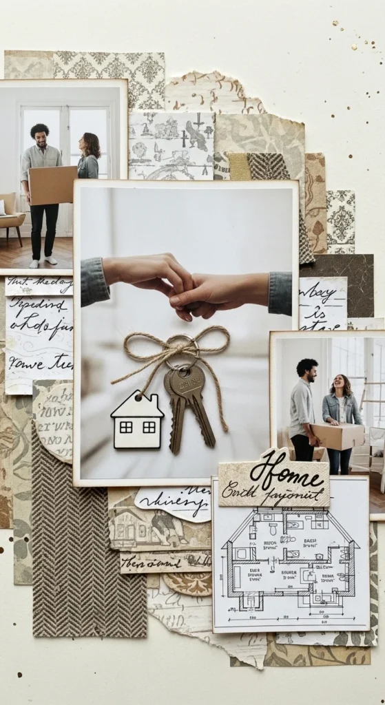 A first home together page is a beautiful way to mark one of the biggest relationship milestones. Whether it was a rented room, a small apartment, or a house you built a life in, the first shared home often holds so many early routines and memories. Add photos from moving day, snapshots of empty rooms, or simple everyday moments like takeout on the floor or boxes stacked in corners. Those imperfect details often make the page feel more heartfelt. You can also include a copied key tag, address card, tiny hand-drawn floor plan, or note about what you loved most about that place. A low-cost design works very well here. Use kraft paper, graph paper, or simple neutral cardstock and let the memories stand out. If you want, add captions like our first kitchen, late-night talks here, or this is where it started feeling like home. This scrapbook idea celebrates not just a building, but the feeling of beginning a shared life. That makes it deeply meaningful for an anniversary album and very easy to personalize.