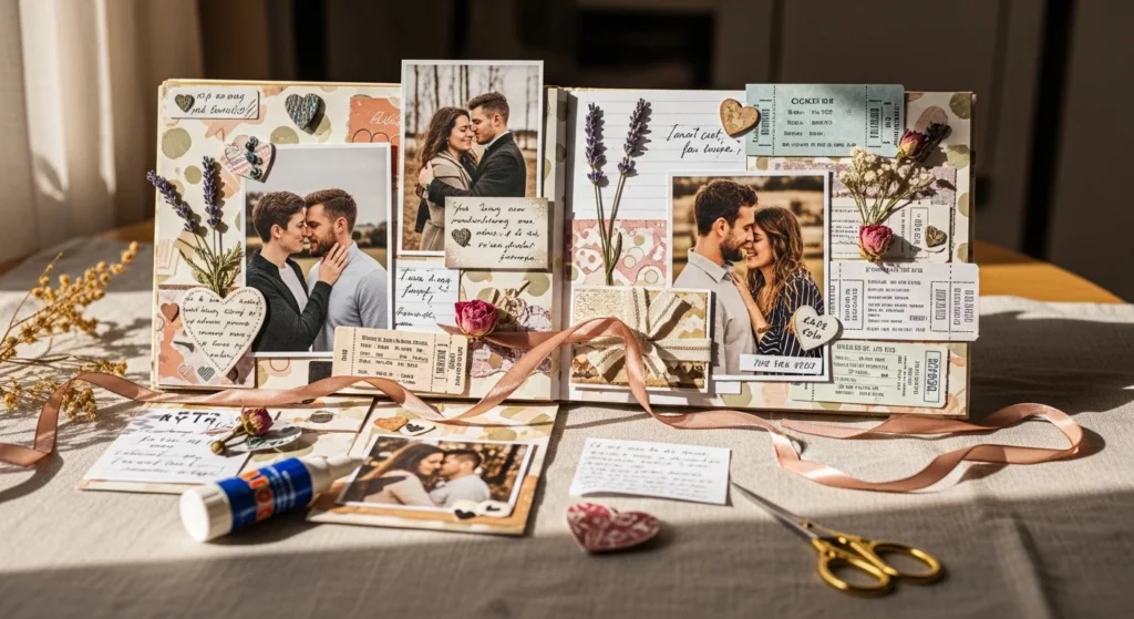 Anniversary scrapbook ideas are a beautiful way to turn love, memories, milestones, and shared moments into something you can hold, flip through, and treasure for years. A scrapbook feels more personal than a standard photo album because it gives space for photos, handwritten notes, saved keepsakes, date-night memories, travel details, and little everyday moments that matter just as much as the big ones. Whether you want a simple DIY anniversary scrapbook or a layered memory book filled with romantic details, the best pages usually mix meaningful photos with affordable, heartfelt extras like tickets, letters, pressed flowers, and journal-style captions. This list is filled with easy anniversary scrapbook ideas that help celebrate love in a warm, thoughtful, and low-cost way.