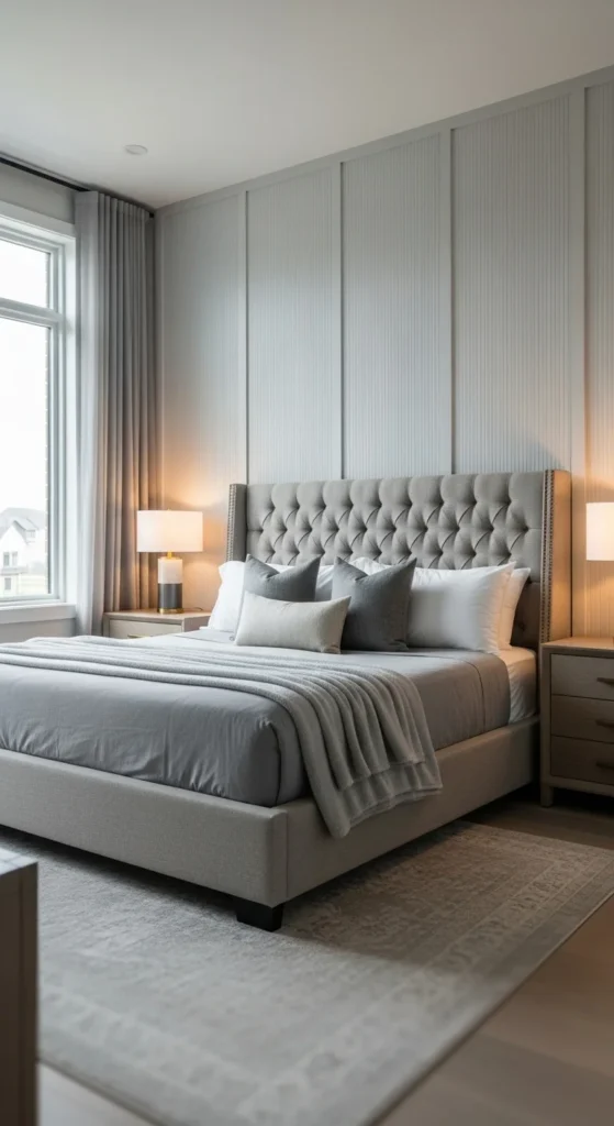 Texture adds depth without relying on color. Panels, limewash, or soft plaster finishes work well. Focus texture on the wall behind the bed to create a focal point. DIY panel kits offer an accessible option. This approach adds interest while keeping the palette calm.