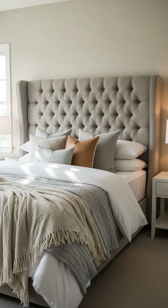 2. Upholstered Headboard That Feels Cocooned