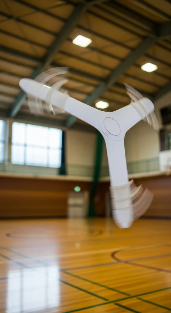 Indoor flyers need slower speed and softer curves. Using lighter paper and smaller bends keeps the flight gentle. This design travels short distances in a controlled arc. It works best in spaces without fans or drafts. Throws should be light and smooth. Because the air is still, even small adjustments are noticeable. This template helps beginners focus on technique. It’s safe for classrooms or large rooms. The goal is controlled return, not distance.