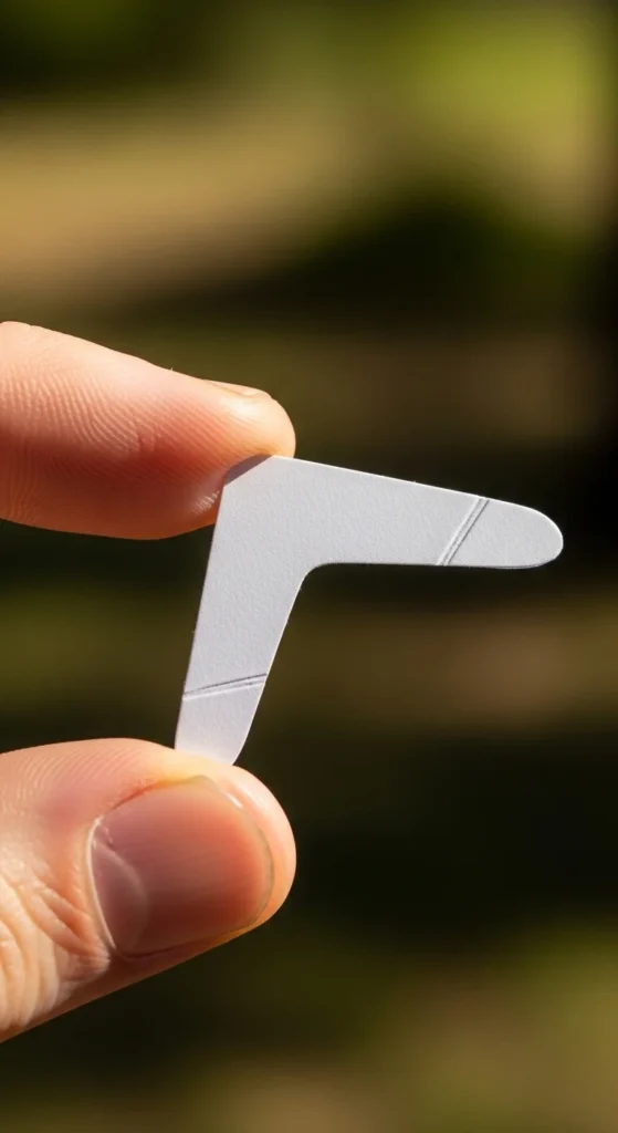 A small boomerang cut from an index card is quick to make and surprisingly effective. The thick material keeps it rigid despite its size. Short arms mean tight, fast loops. It works well in small yards or indoors. A light flick sends it out and back within a few feet. Because it’s small, adjustments must be subtle. Too much bend can cause sharp dives. This design is great for quick practice. It shows that even tiny builds can return smoothly.