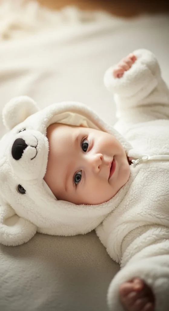A baby polar bear suit feels cuddly. Use a fluffy white onesie. Add ears to a hood. For paws, use white socks with felt pads. Parents can place baby near stuffed animals. Keep the suit breathable. For budget, use an old blanket to make ears. Fluffy edges add charm.