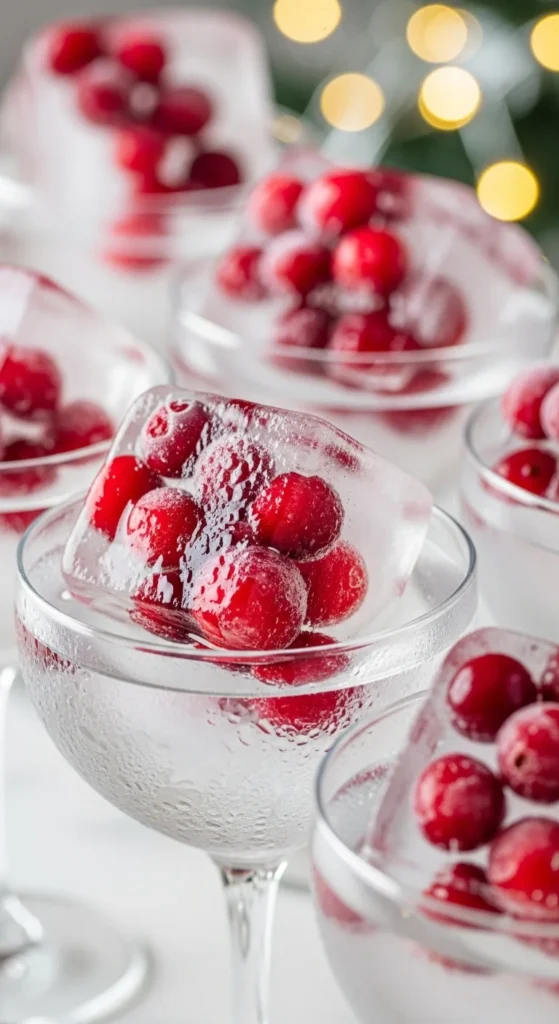 Freeze cranberries in water or juice to make decorative ice cubes. They look stunning in clear drinks and add flavor as they melt. It’s an easy detail guests will notice.