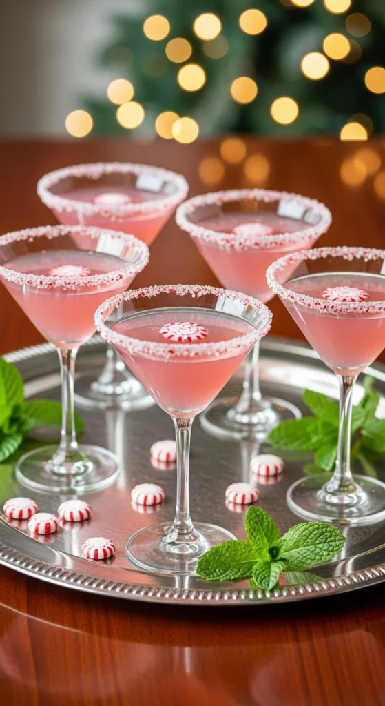 Dip glass rims in crushed peppermint candy for a festive touch. Pair it with chocolate martinis or peppermint schnapps cocktails. Simple, fun, and Instagram-worthy.