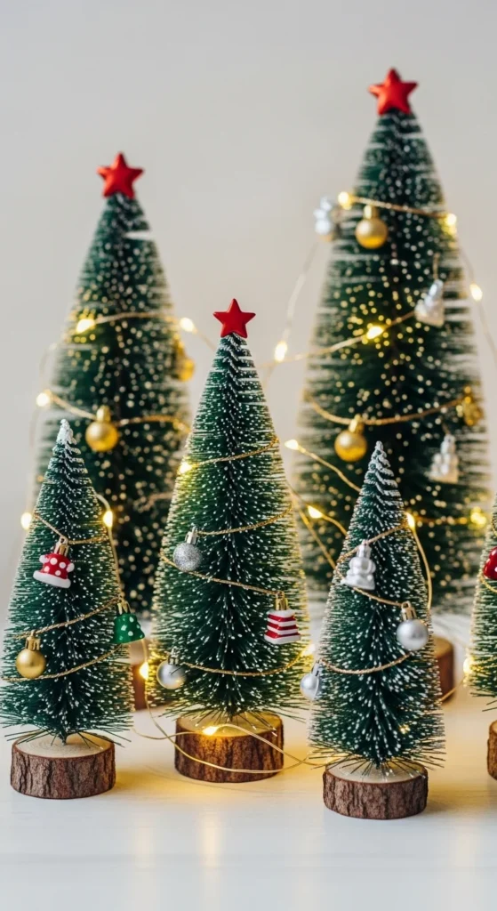 Use mini trees instead of one big centerpiece. Place one on each table or the bar cart. Add ornaments or tiny bows to keep things coordinated.