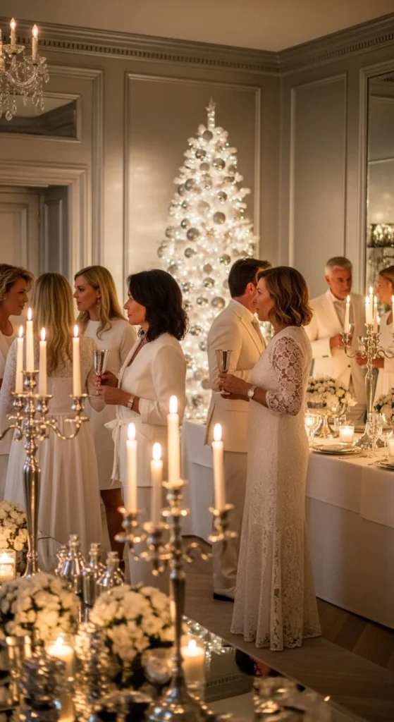 Host an all-white winter party for a classy touch. Use white linens, silver decor, and soft lighting for an elegant look.