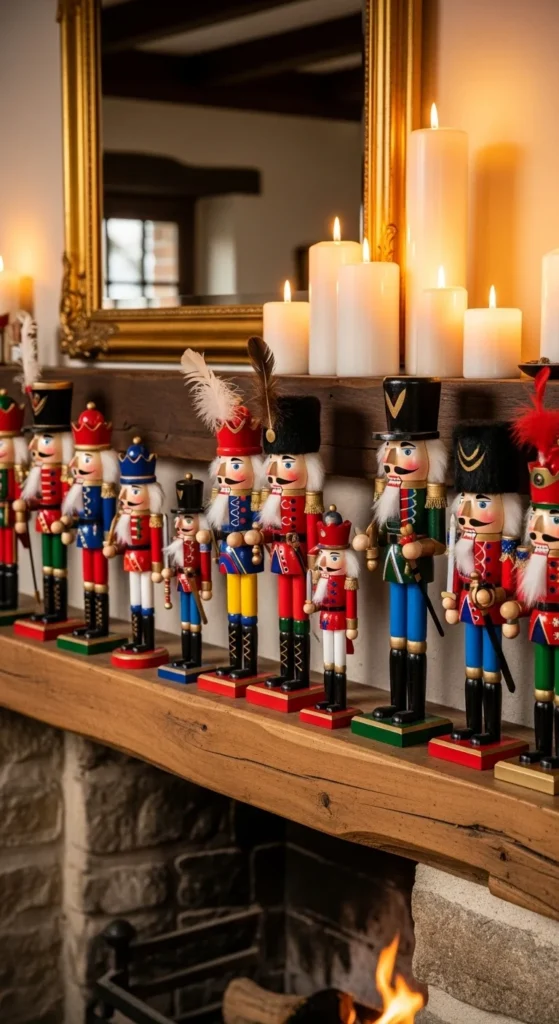 Decorate with nutcrackers of different sizes. You can find affordable ones at thrift stores or dollar shops. They add old-school charm without much effort.