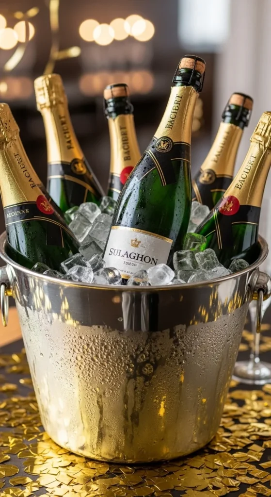 Coat a simple ice bucket with glitter spray paint for extra shine. Add frozen grapes to keep drinks cold longer and make the bucket look special.