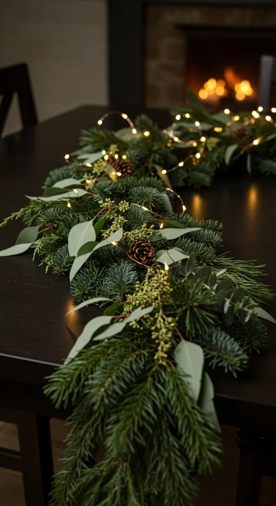 Create your own garland using fresh or faux greenery. Add pinecones or small ornaments for depth. It’s simple to assemble and smells amazing if you use real pine.
