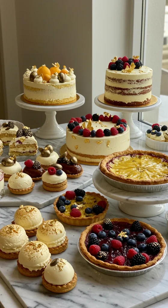 Instead of hiding desserts in the kitchen, display them beautifully. Use cake stands or tiered trays. Sprinkle powdered sugar for a snowy effect and decorate with cranberries for color.