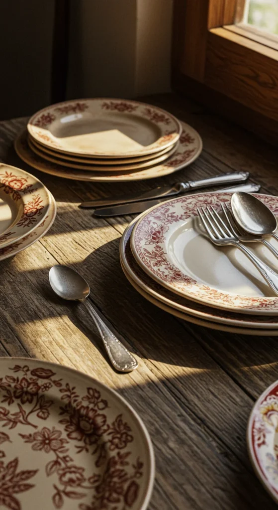 Borrow or thrift vintage tableware for an elegant touch. Mismatched pieces tell a story and make your table unique. Pair them with neutral linens to balance the look.