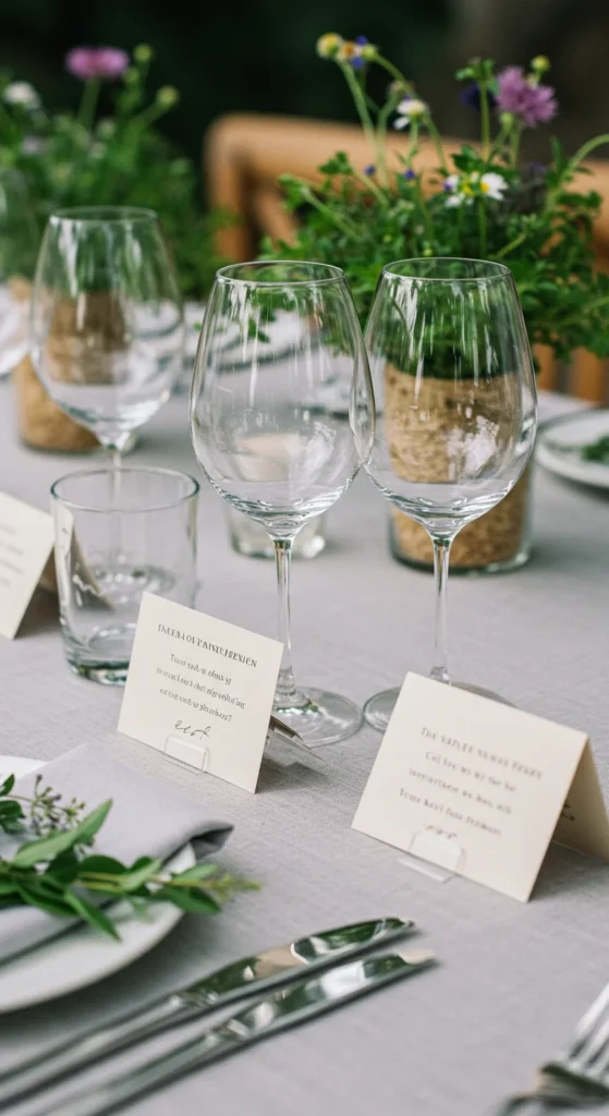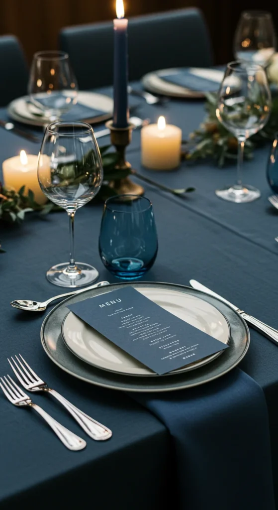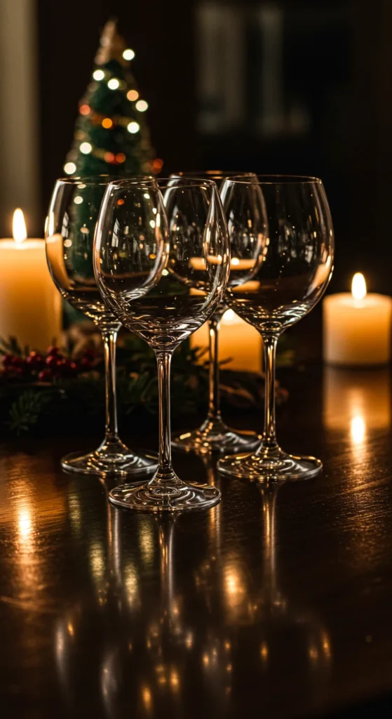 Crystal glassware instantly adds elegance. If you don’t have any, use clear glass tumblers—they still reflect light beautifully. Wash them before the event so they sparkle under candlelight. It’s all about presentation, not price.