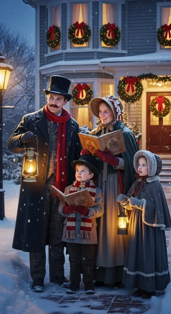Channel Victorian charm with caroler costumes. Thrift coats, scarves, and bonnets make it simple. Hold carol books or candles. Great for outdoor pictures or neighborhood singing nights.