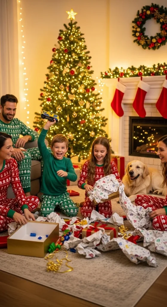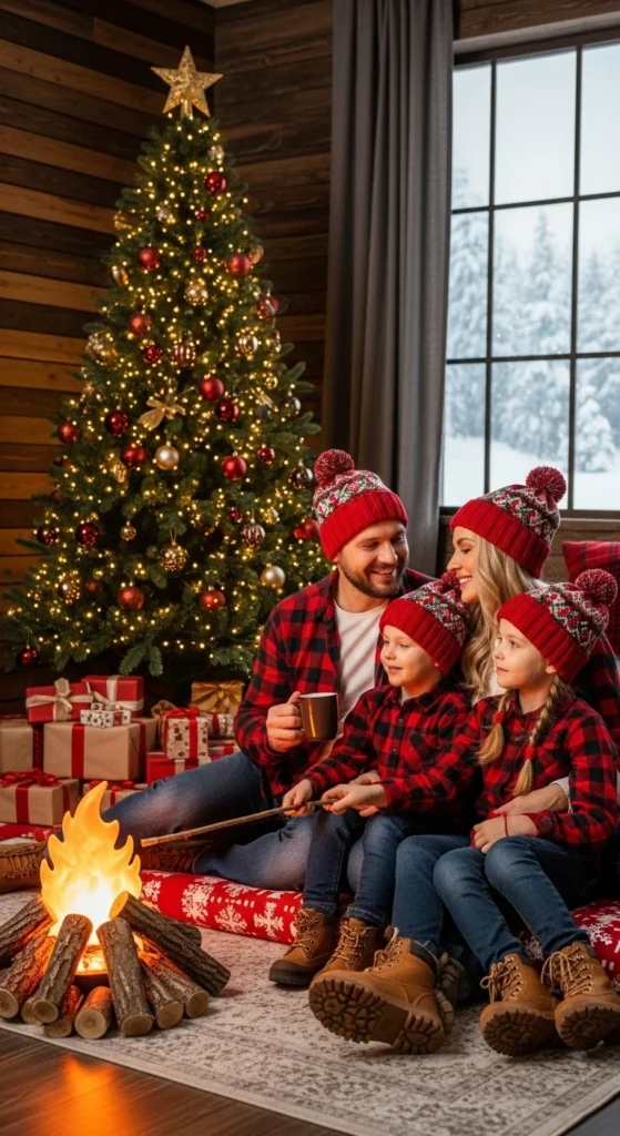 Go natural and capture the joy of Christmas morning. Matching pajamas, messy hair, and big smiles are all you need. Snap photos while unwrapping gifts or sipping cocoa. It’s authentic, heartwarming, and always memorable.