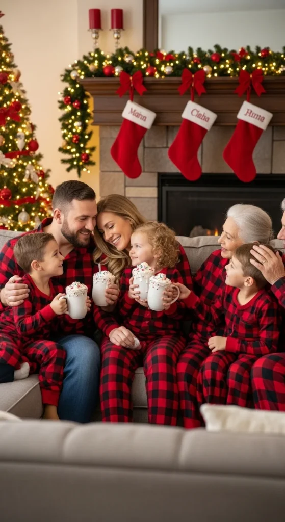 Simple, cozy, and adorable — matching Christmas pajamas never fail. Choose plaid, reindeer, or candy cane patterns. Many stores sell family sets. Pair them with fluffy socks and mugs of cocoa for a cozy look.