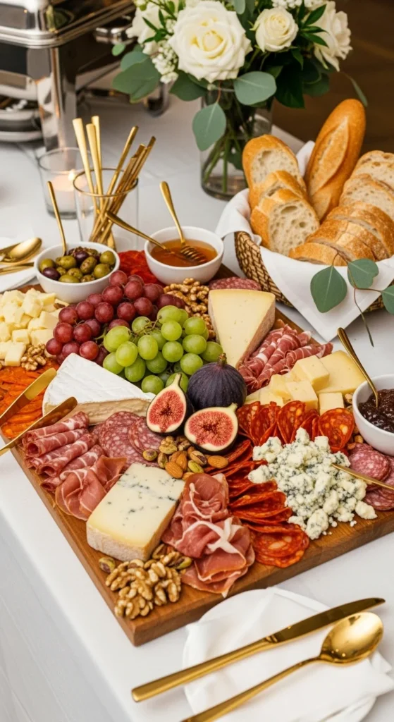 A charcuterie table feels fancy yet simple. Mix cheeses, cured meats, and fresh fruits. Use wood boards for style.
