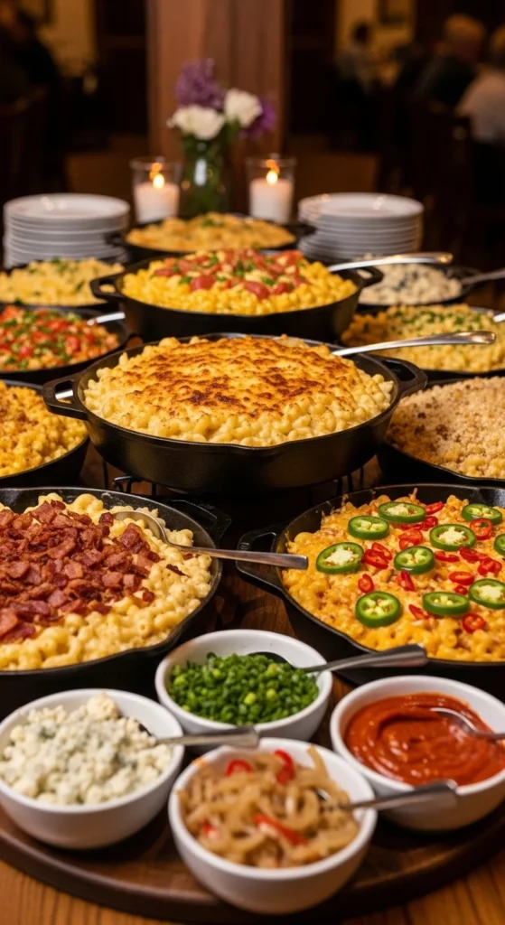 Upgrade comfort food with a mac and cheese bar. Add toppings like crispy bacon, jalapeños, or truffle oil. Kids and adults love it alike.