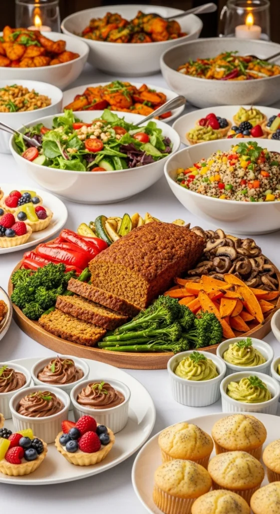Include everyone with a vegan buffet. Serve roasted veggies, lentil loaf, and dairy-free desserts. Label clearly for easy choice.