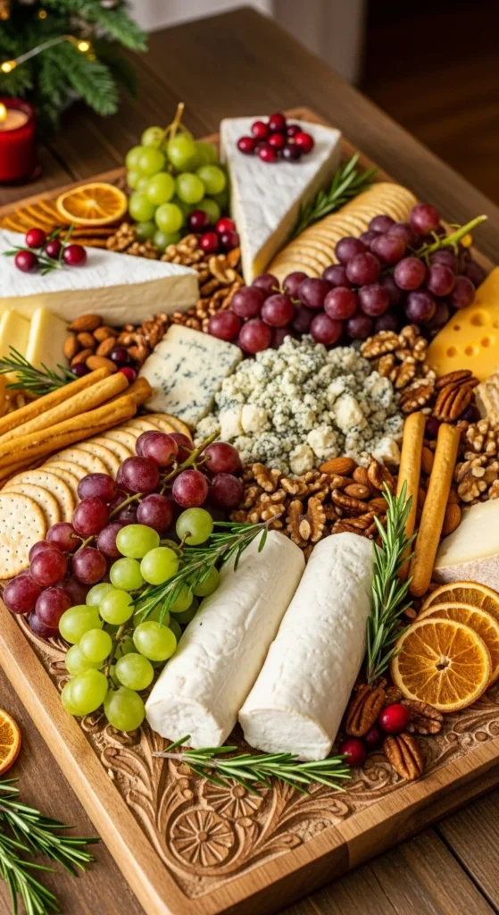 Build a grazing board that’s both pretty and practical. Combine cheese, fruits, nuts, and cured meats. Decorate with sprigs of pine and red berries for a festive finish.