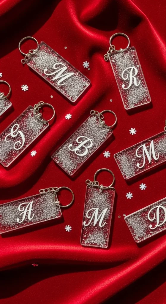 Create simple acrylic or leather keychains with your guests’ initials. They’re lightweight, stylish, and affordable.