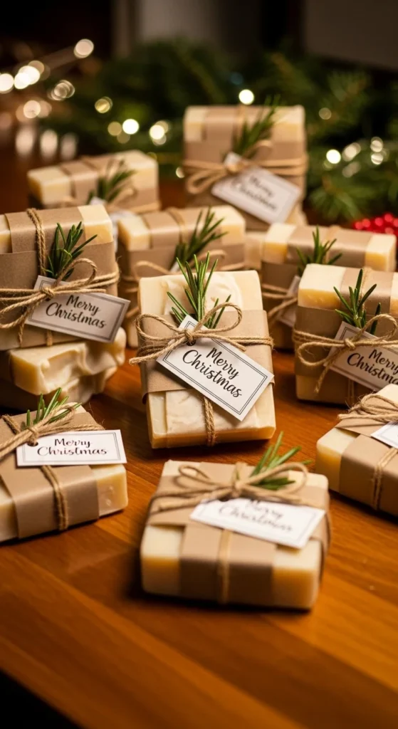 Homemade soap is a lovely handmade touch. Use melt-and-pour soap bases and essential oils like lavender or peppermint.