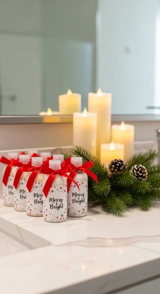 Wrap them with custom holiday labels and a short thank-you message. It’s something everyone uses, so your guests will actually appreciate it.
