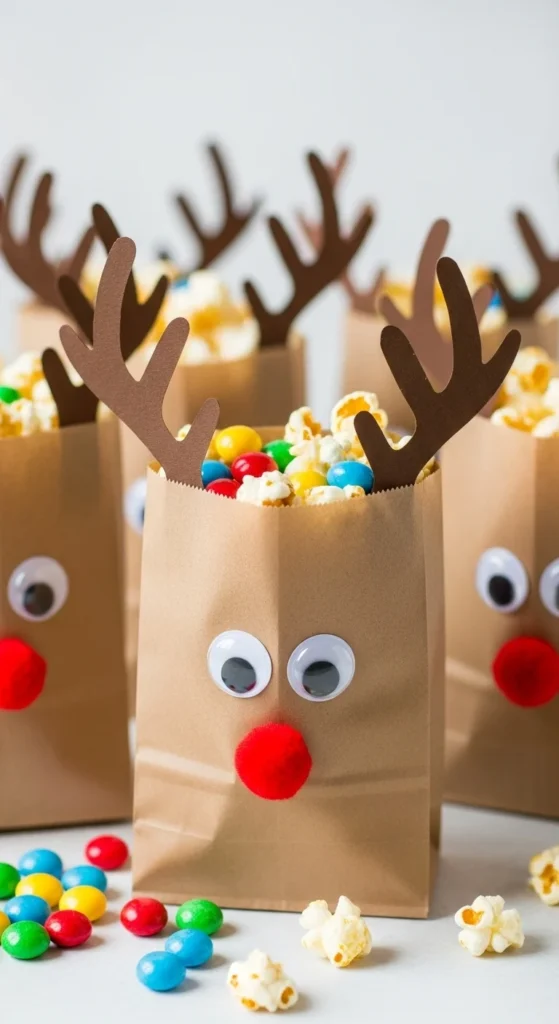 Kids and adults both adore this one. Fill brown paper bags with popcorn or candy and decorate them to look like reindeer.