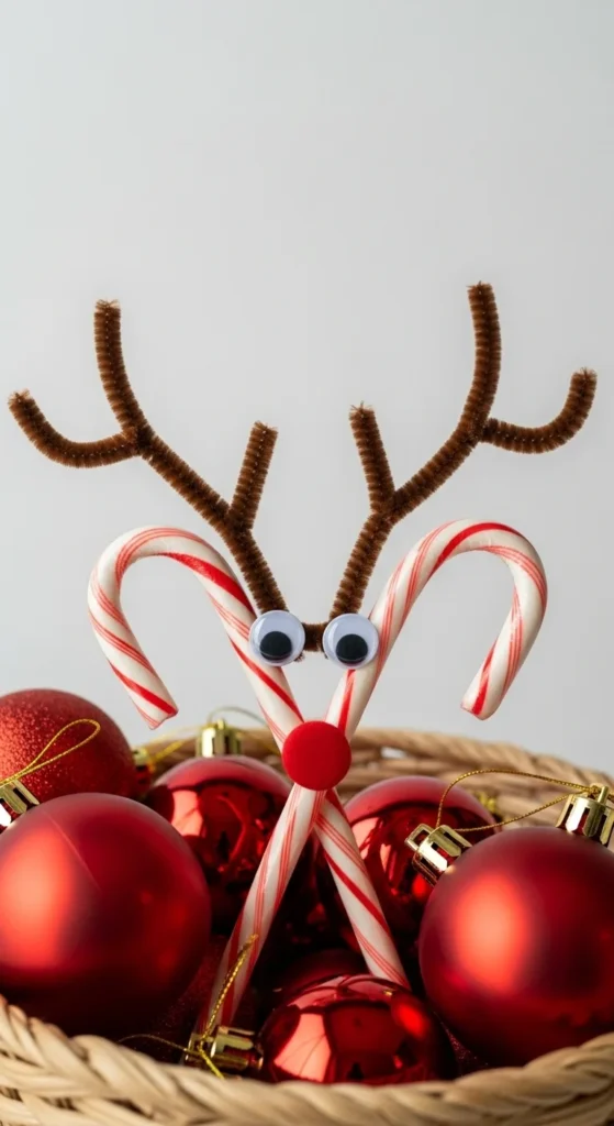 This classic is simple and adorable. Twist brown pipe cleaners into antlers around two candy canes and add googly eyes.