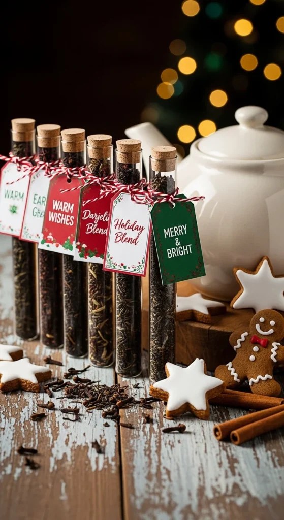 For tea lovers, this is perfect. Fill clear tubes or jars with loose-leaf tea blends like peppermint or chai.