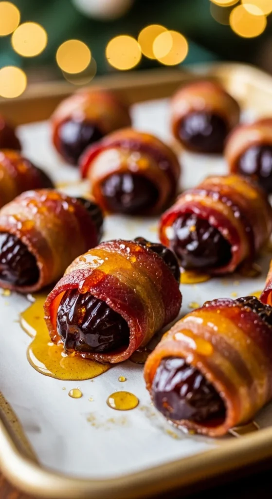 Crispy bacon meets chewy, sweet dates — the perfect combo. Stuff each date with goat cheese or almonds, wrap in bacon, and bake until golden. Serve warm with toothpicks. You can prepare them ahead and reheat when guests arrive.