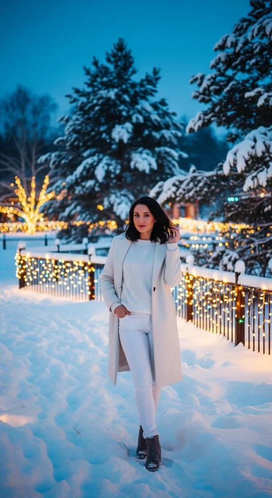 A monochrome white look feels crisp and chic. Mix textures like knit, satin, and faux fur to add depth. Pair with nude or metallic accessories. It’s easy to pull off with pieces you already own, making it a zero-cost glam idea.