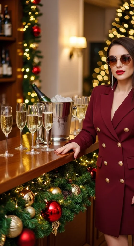 A blazer dress blends structure and glamour. Burgundy adds a festive touch. Pair with pointed heels and gold jewelry. For a quick DIY, wear an oversized blazer as a dress with a statement belt—it’s simple and stylish.