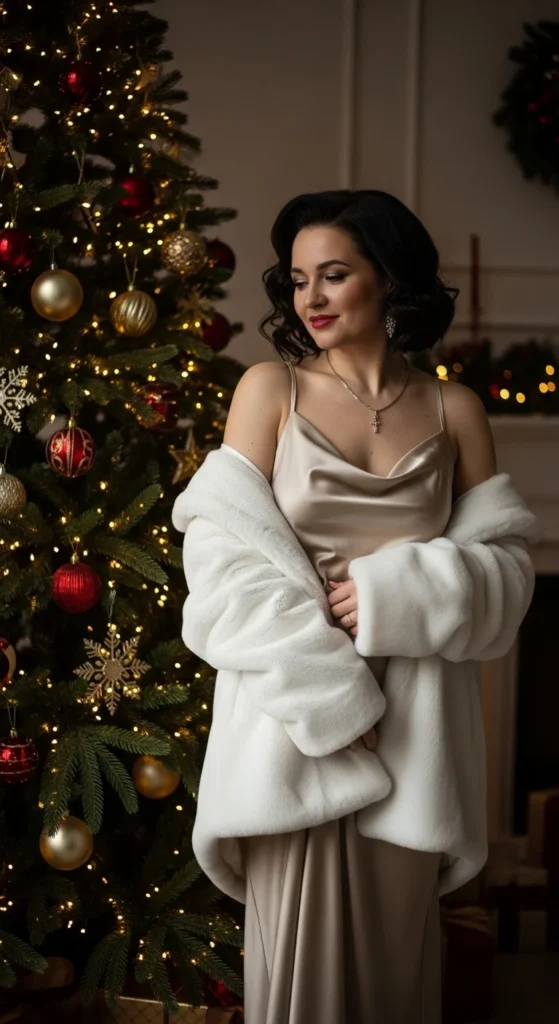 A satin slip dress gives instant elegance. Drape a faux fur coat or shrug over it to stay warm while looking high-end. Pair with strappy heels or tall boots. Keep jewelry delicate—think gold chains or hoops. Thrift stores often carry satin nightgowns that can double as chic party dresses after minor alterations.