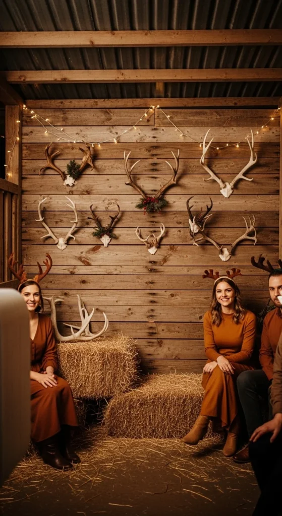 Props like antlers, bells, and sleigh ropes add the finishing touch. It’s simple, rustic, and great for outdoor parties.