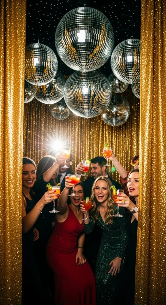 A few disco balls instantly turn your booth into a party magnet — super fun for adults’ Christmas nights.