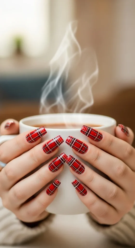 10. Plaid Christmas Nails