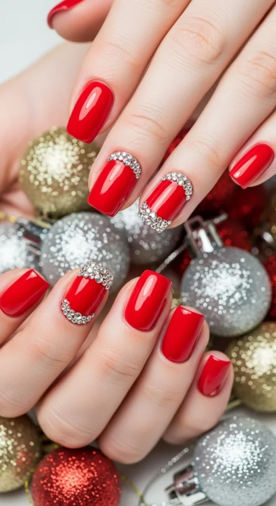 Add glam to French tips by drawing a fine glitter line beneath the red edge. It’s elegant and festive without going overboard. Use silver or gold glitter for that subtle shine.