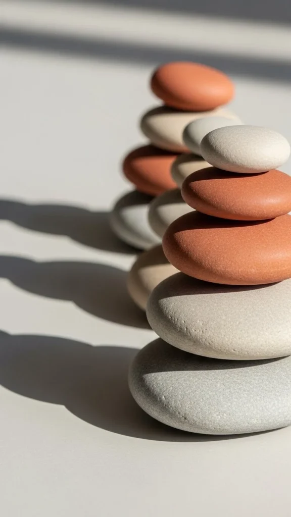 Clay pebbles bring calm energy to shelves. Roll small pebble shapes in different sizes. Stack them or display them alone. Paint in neutral tones or leave raw. These pieces are simple, fast, and soothing to create.