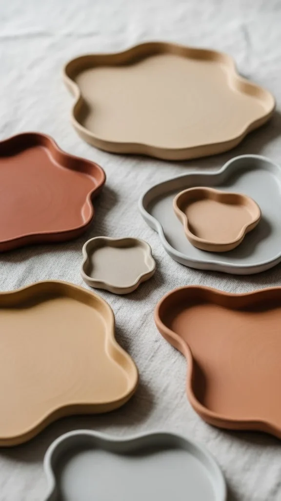 Wavy plates offer soft curves that suit jewelry, keys, and desk items. Roll a ball of clay, flatten it, and pinch the edges slightly for movement. You can press lace or leaves to add texture. Once dry, paint the edges with gold or keep them raw. These plates look great on vanities, coffee tables, or shelves. They take very little time and always turn out unique.